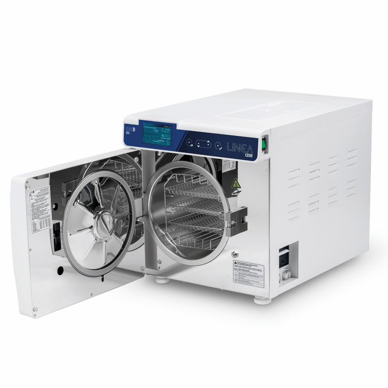 Com design moderno, gabinete metálico durável e sistemas de bloqueio e rastreamento integrados, a Linea B22 GII garante esterilização rápida, eficiente e documentada, elevando o padrão de biossegurança da sua clínica ou laboratório.