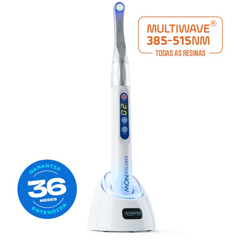 - Multiwave: A ação conjunta de 3 leds proporciona comprimento de onda de 385nm – 515nm e garante que tanto o pico de absorção dos materiais tradicionais que é 460nm quanto o pico de absorção de materiais como o do TPO – 405nm, sejam alcançados.